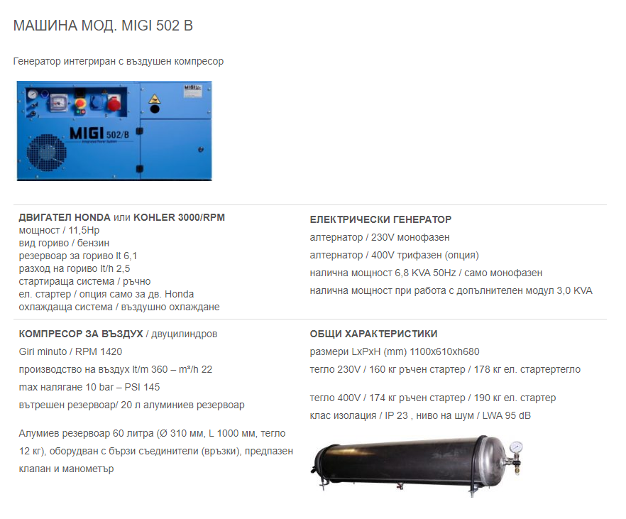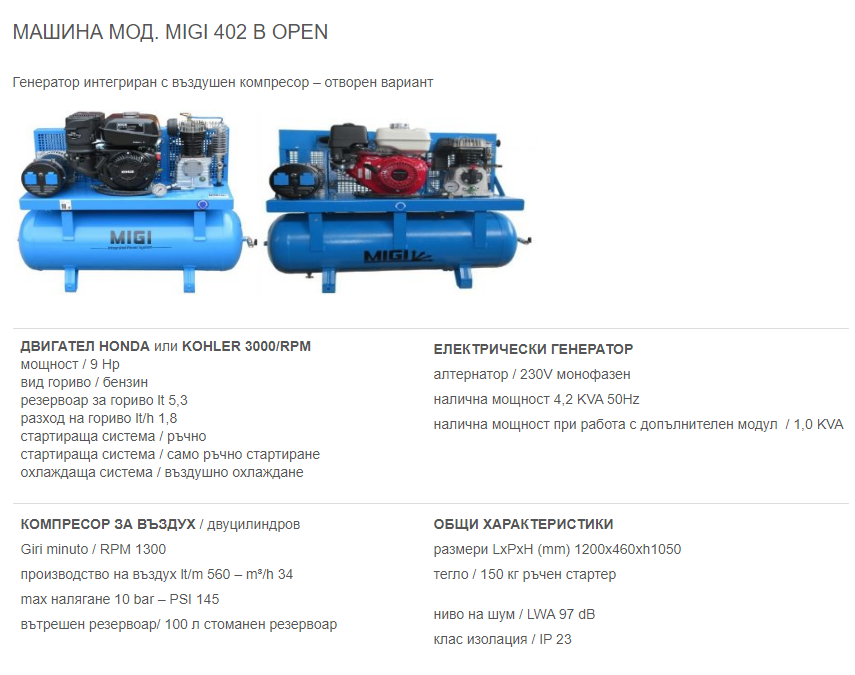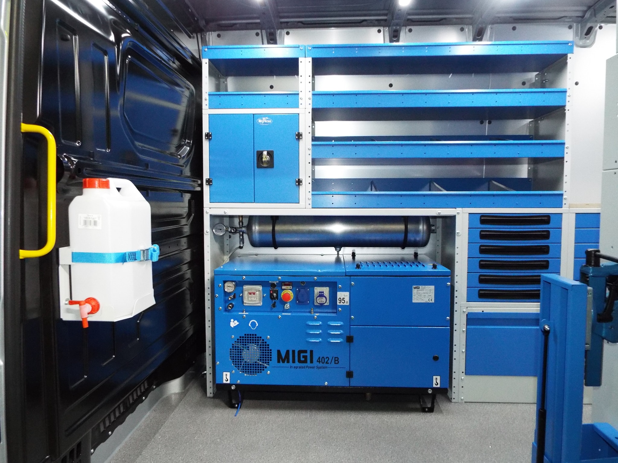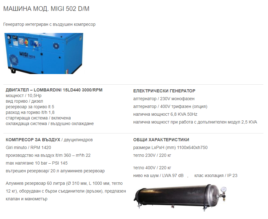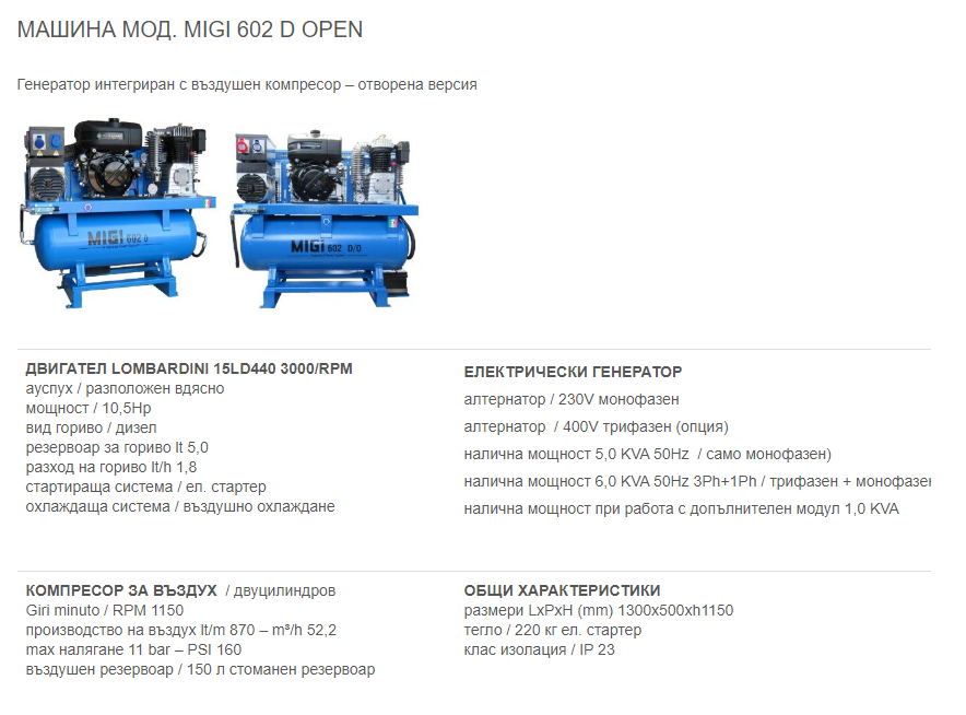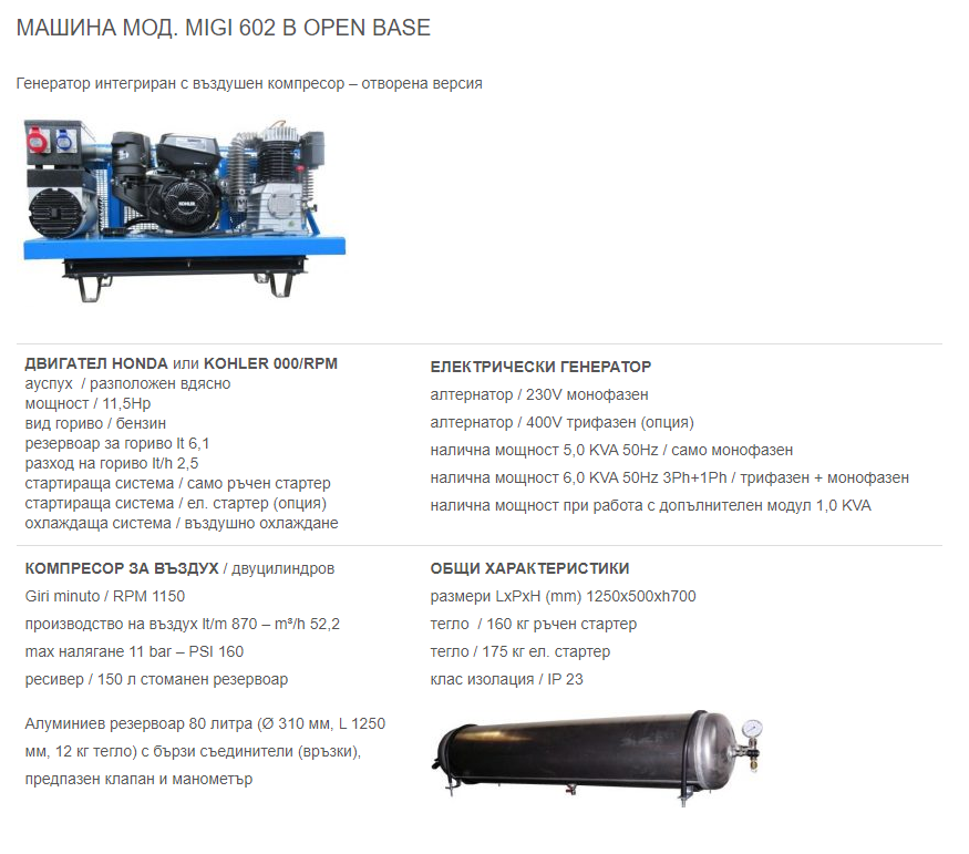 Предлагаме широка гама от компактни, леки, мощни, обезшумени генератори и компресори 2в1, които са проектирани да отговарят на всички нужди за компресиран въздух и електричество в мобилната работилница или сервизния автомобил. Изборът на генератори и комбинации от генератор/компресор (до 8.5 киловата и 800 литра/минута), специално проектирани за ванове, е голям. Моделите тежащи до 200 килограма могат да бъдат монтирани на плъзгащи се основи, за да бъдат лесно достъпни от извън превозното средство