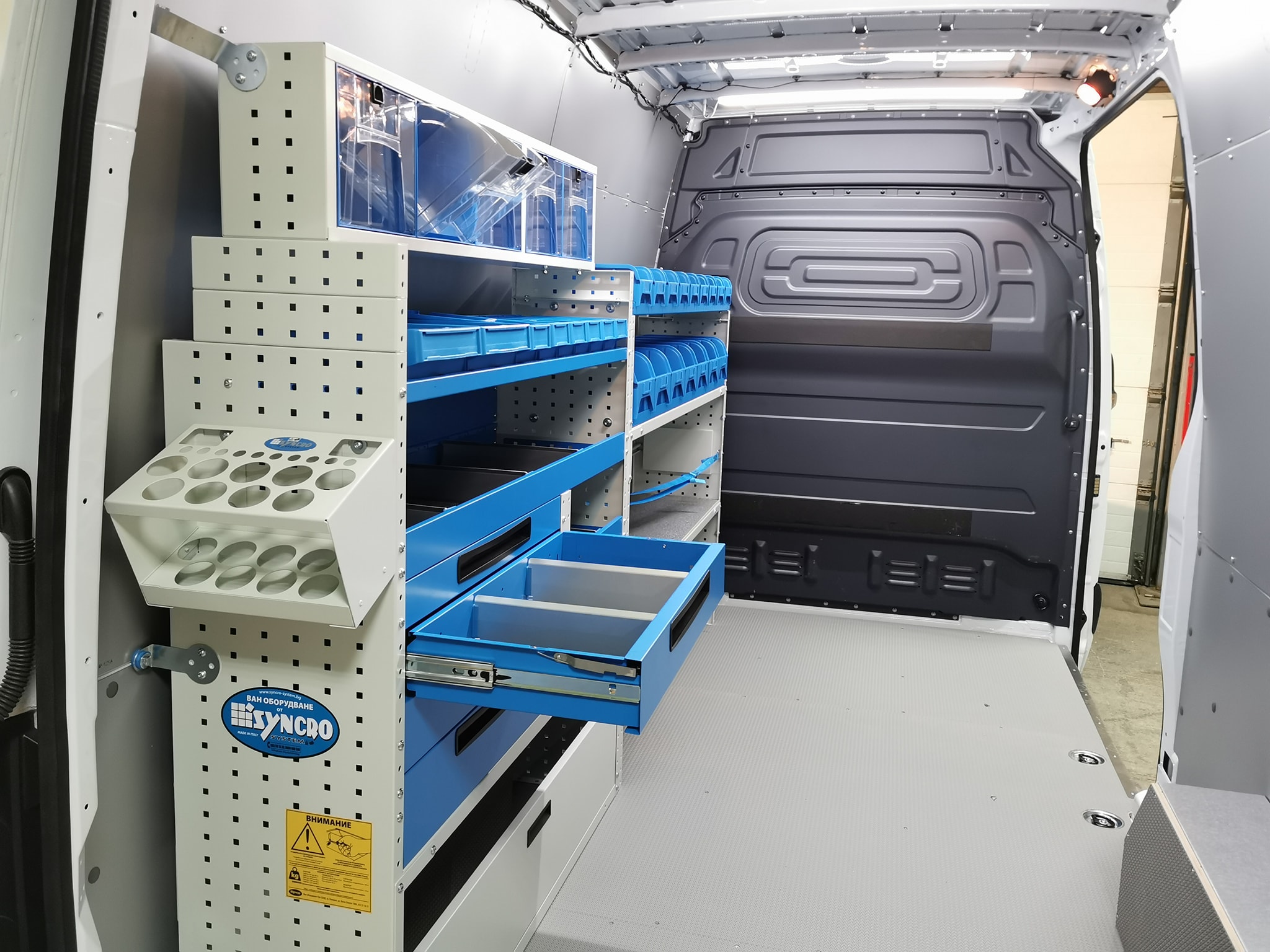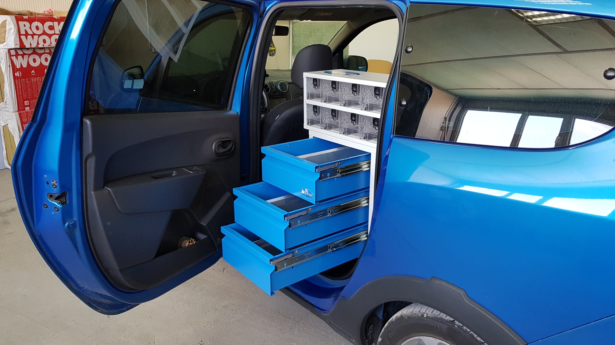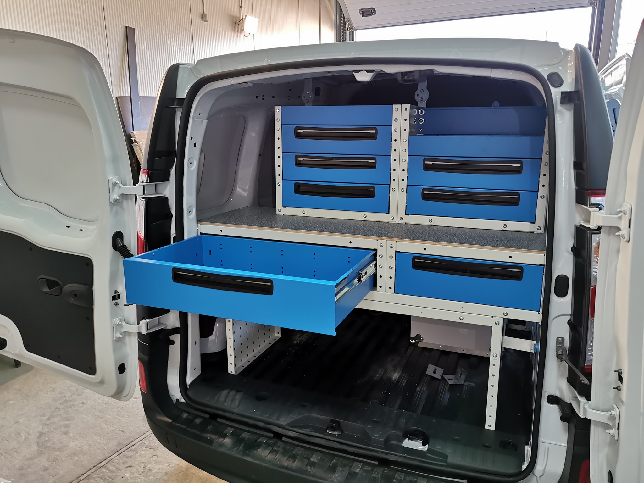 Чекмеджетата са произведени от високоякостна стомана, така че да имат голяма дълготрайност във времето и да гарантират на ползвателите максимална практичност и безопасност. На предния панел на всяко чекмедже е разположена дръжка с автоматична система за заключване, която предотвратява случайно отваряне и държи чекмеджето затворено по време на път, дори и при труднопроходими пътища. Системата позволява отваряне и затваряне чрез натискане на бутон в ръкохватката. С помощта на телескопичните водачи от неръждаема стомана чекмеджетата могат да бъдат издърпвани в цялата си дължина / обем. Чекмеджетата са снабдени и с алуминиеви разделители, разположени в дълбочина, които осигуряват инструментите в чекмеджето да стоят по местата си, въпреки вибрациите по време на движение. Те се захващат стабилно с 2 или 4 държача от полипропилен като могат да се поставят на различно място изключително лесно или да се премахват, когато е необходимо. Всяко чекмедже е с товароносимост до 120 кг.