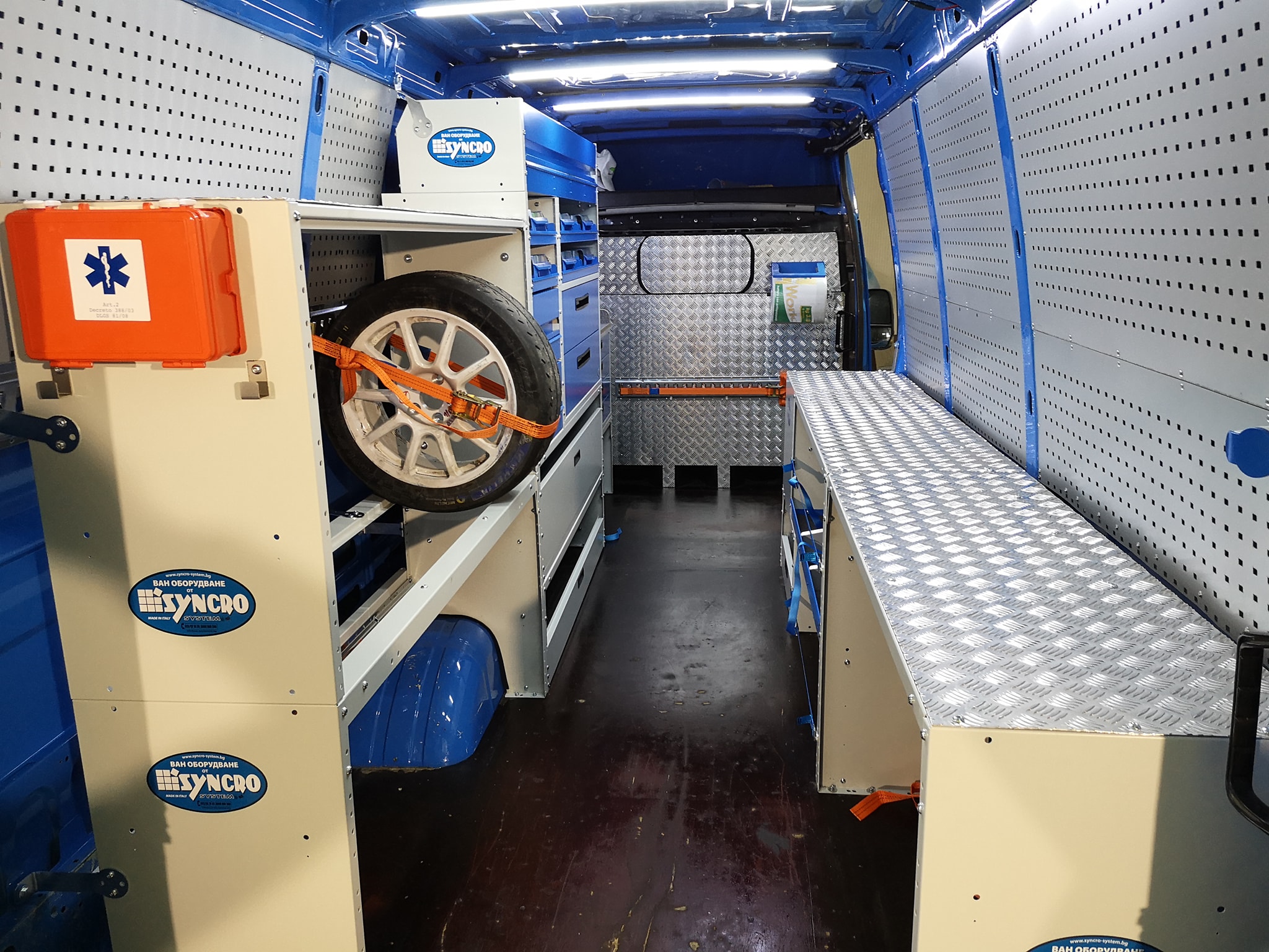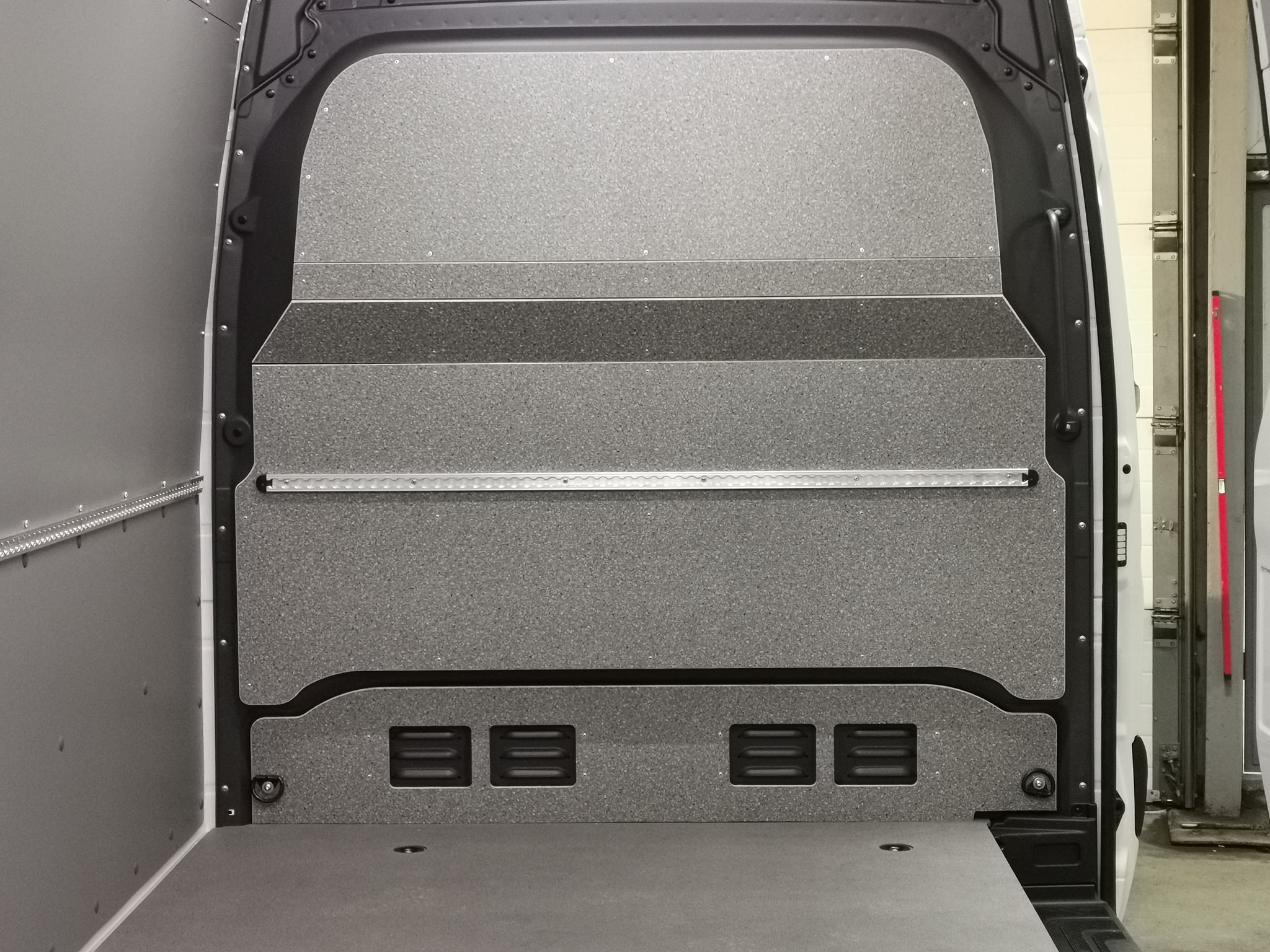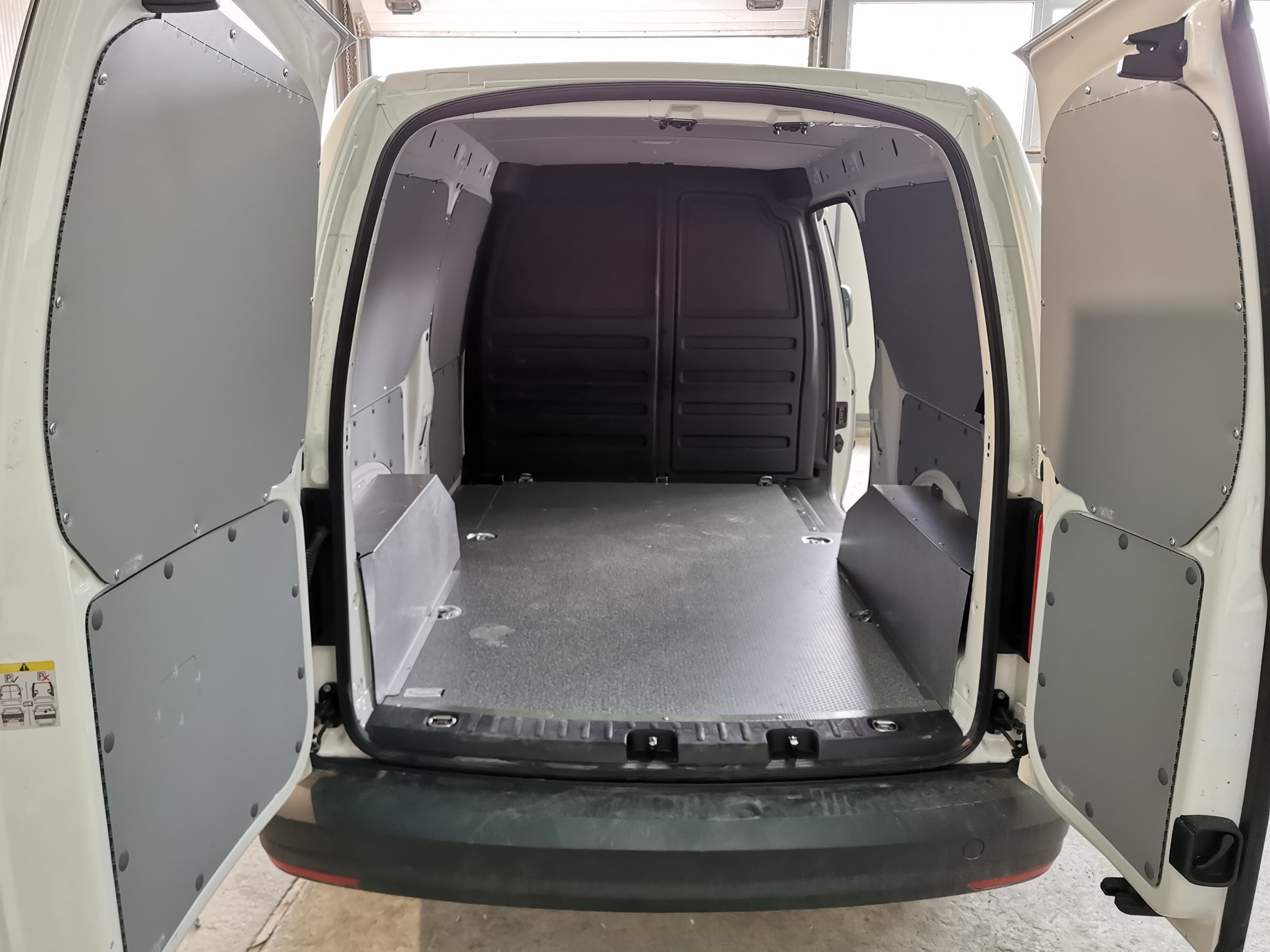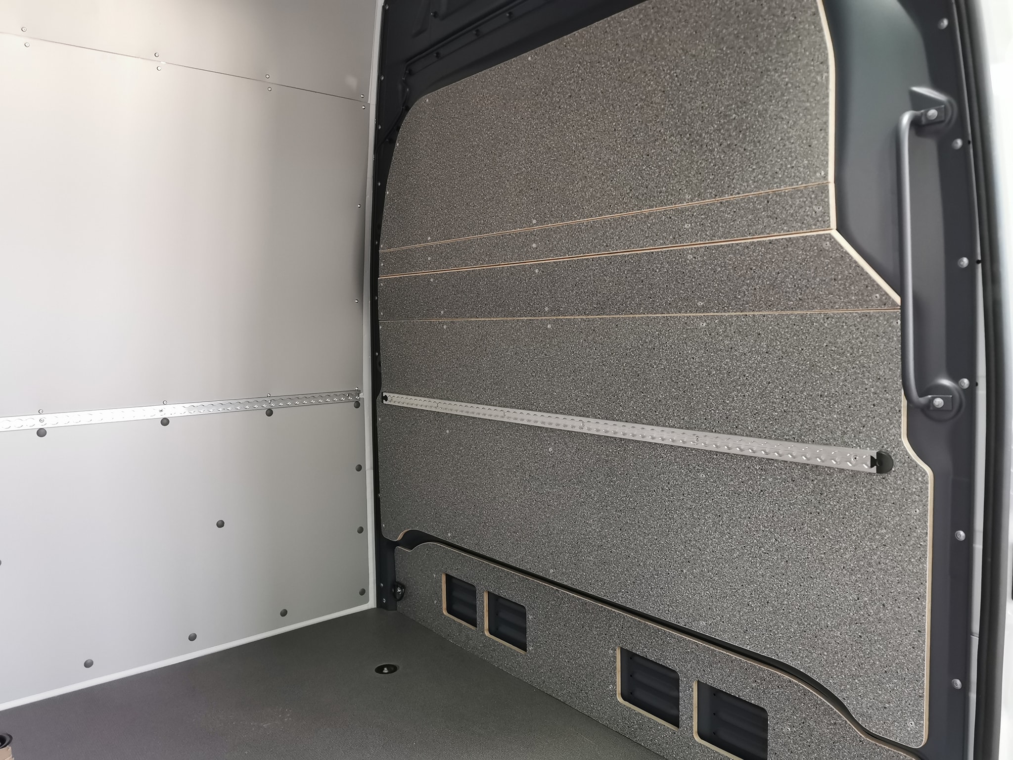 В допълнение към подовете за бус, предлагаме и защитна облицовка за стените на товарното отделение, преградна стена зад шофьорската кабина, задните и странична врати. Всички стенни панели са фабрично оразмерени и изрязани, с предварително пробити отвори, готови за бърз монтаж. За предпазване на калниците предлагаме защитни арки, изработени от конструкция от 2 мм стоманен лист отгоре и предна част като на подовите и стенните облицовки по избор. Може да избирате измежду различни материали: полипропилен с дебелина 4мм, електролитно поцинкована и прахово боядисана стомана, алуминий или перфорирана стомана. За стъклата предлагаме решетки. При монтирането на металните облицовки се използват специални меки гумени уплътнения, за да се предотврати евентуални дрънчене