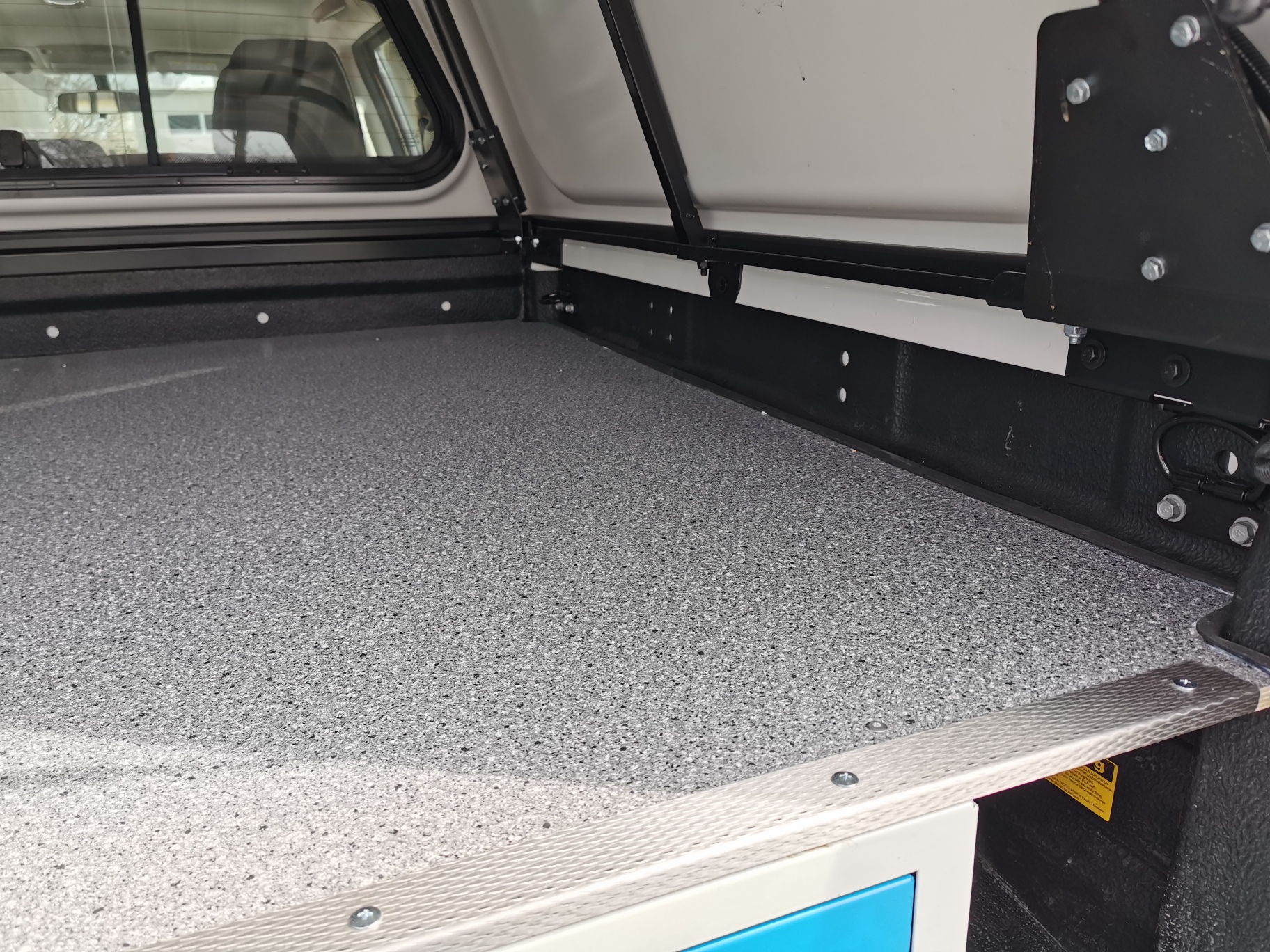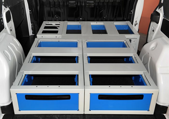 Подовите шкафове с чекмеджета са поставени над товарната равнина и са покрити с втори подов панел (плоча – протектор), който се превръща в нова подова плоскост, по която може да се ходи. По този начин могат да се съхраняват сигурно и безопасно инструменти и оборудване без да се отнема пространство за превоз на допълнителен товар. Подовият шкаф може да съдържа от 3 до 6 чекмеджета, в зависимост от желаната височина на отделните елементи: 2 или 4, до които се достига от задната врата, и 1 или 2 – за достъп от страничната врата.