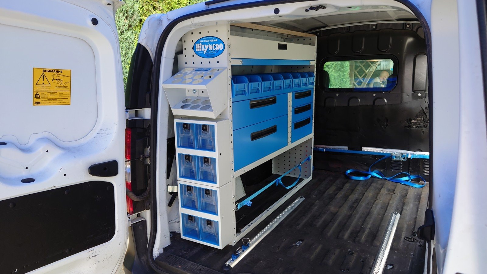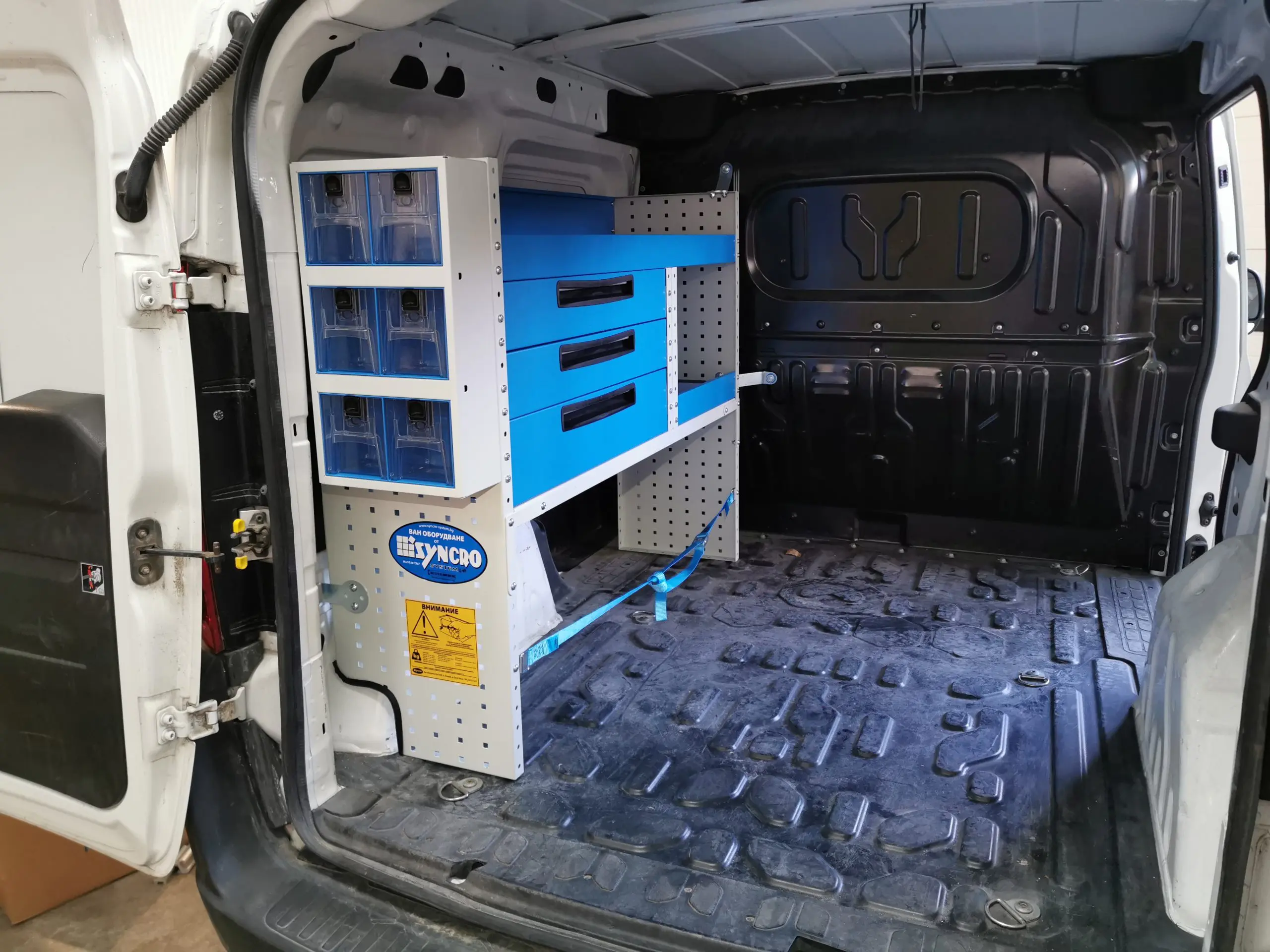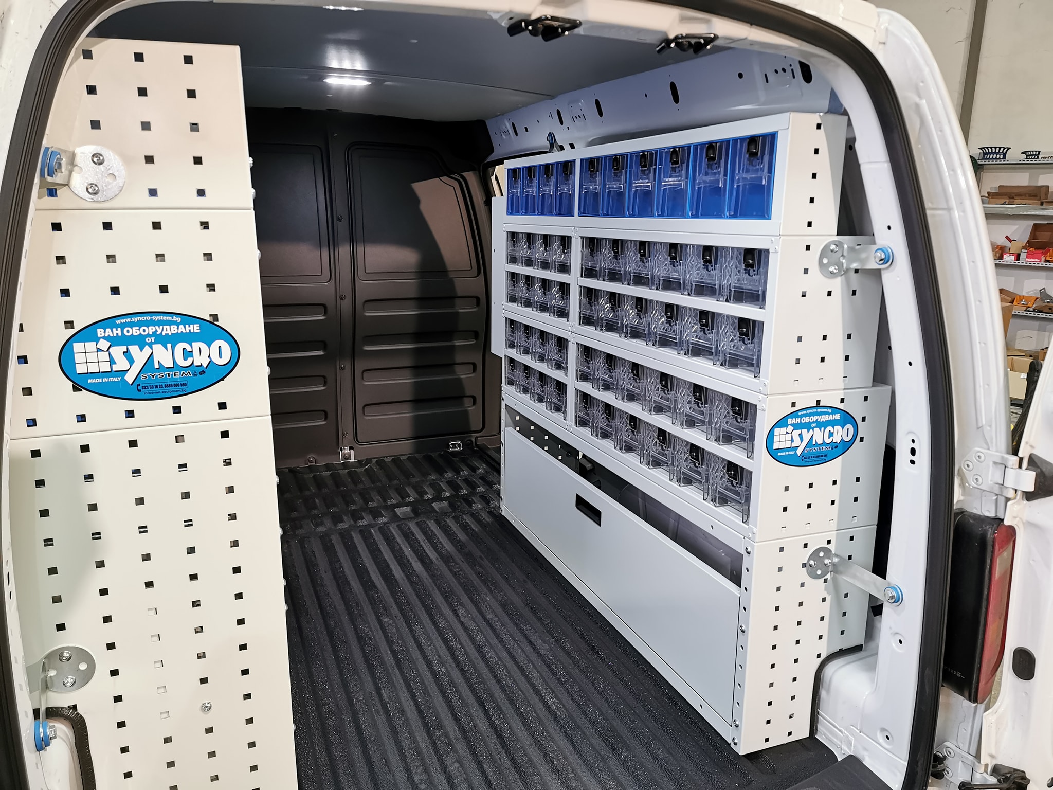 Всяко чекмедже има автоматичен бутон за затваряне и система против нежелано отваряне, така че да се гарантира безопасността по време на път. Чекмеджето може да се изважда изцяло, за да се напълни или почисти