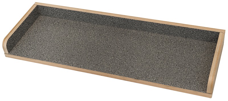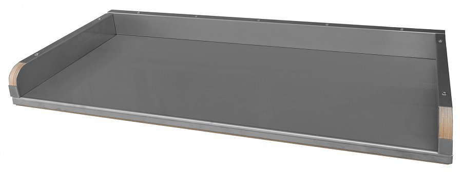 Върху основния плот от шперплат, покрит с тънък слой смола с мраморен ефект, може да се добави и един пласт ламарина от неръждаема стомана. Този допълнителен пласт служи за подобряване на здравината на рафта, като позволява на потребителя да поставя върху него и много тежки предмети, без да се опасява от нараняване на повърхността. Освен това стоманата опростява операциите по почистване и прави частта от вана, предназначена за работилница, напълно неподатлива на последиците, причинени от влажност и разливане на течности. Работните плотове за ванове се предлагат със или без странични бордове. Ако изберете стоманена облицовка, евентуалните странични бордове и/или задният борд също ще бъдат предпазени с този материал.