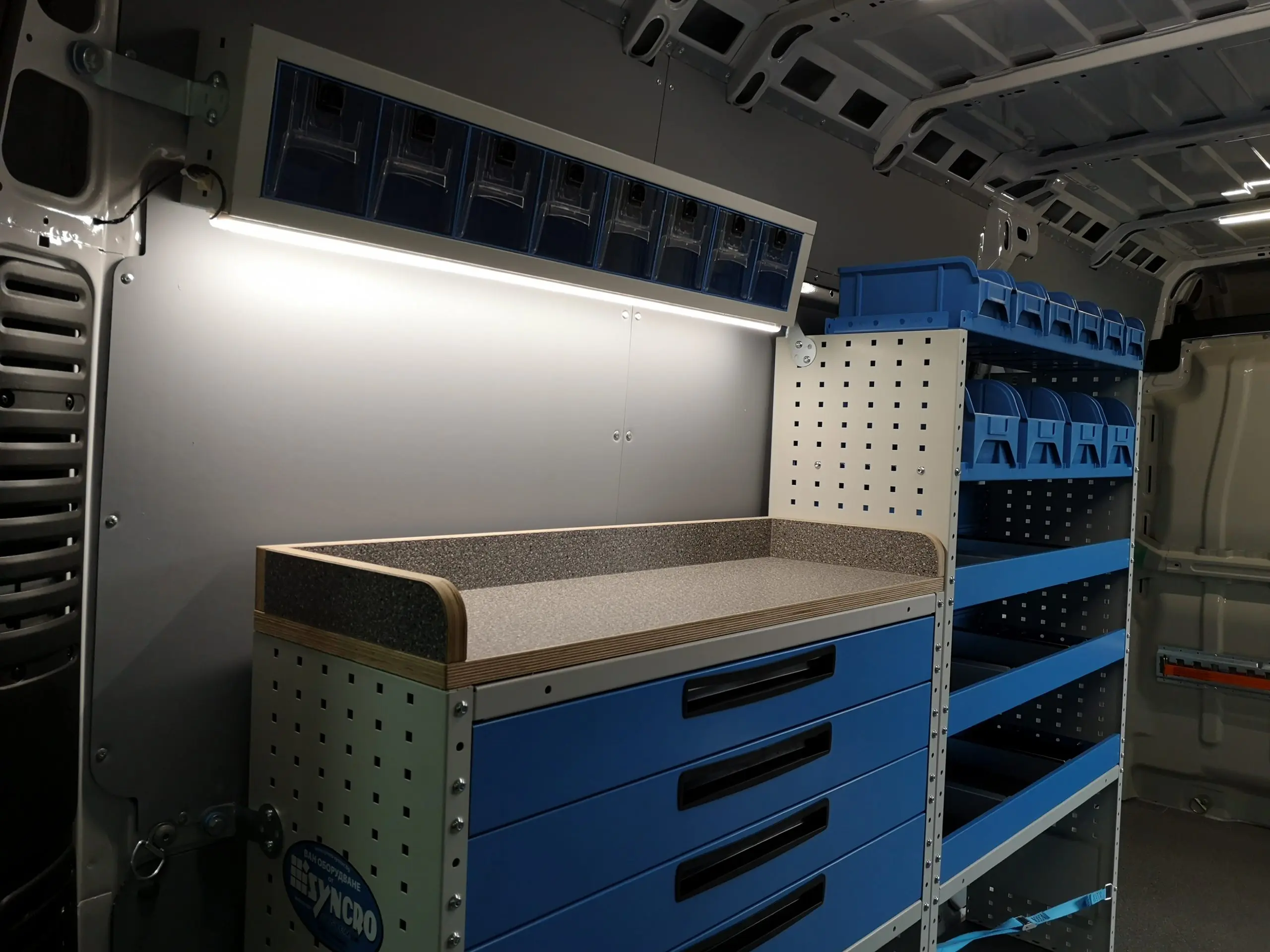 При правилната комбинация от модули, ванът се трансформира от обикновено превозно средство за превоз на стоки и материали в мобилна работилница и позволява оптимизиране на времето, за което водопроводчици, електротехници, монтажници и други майстори може да се намесят за отстраняване на проблема. Сред елементите, които допринасят за ефикасността на това трансформиране, се числят работните плотове. Те осигуряват на ползващите ги място за извършване на малки поправки, за смяна на компоненти и изпълнение на мероприятия по поддръжка директно при клиента, на даден обект и във всички други ситуации, в които се озовават извън стационарното си работно място.