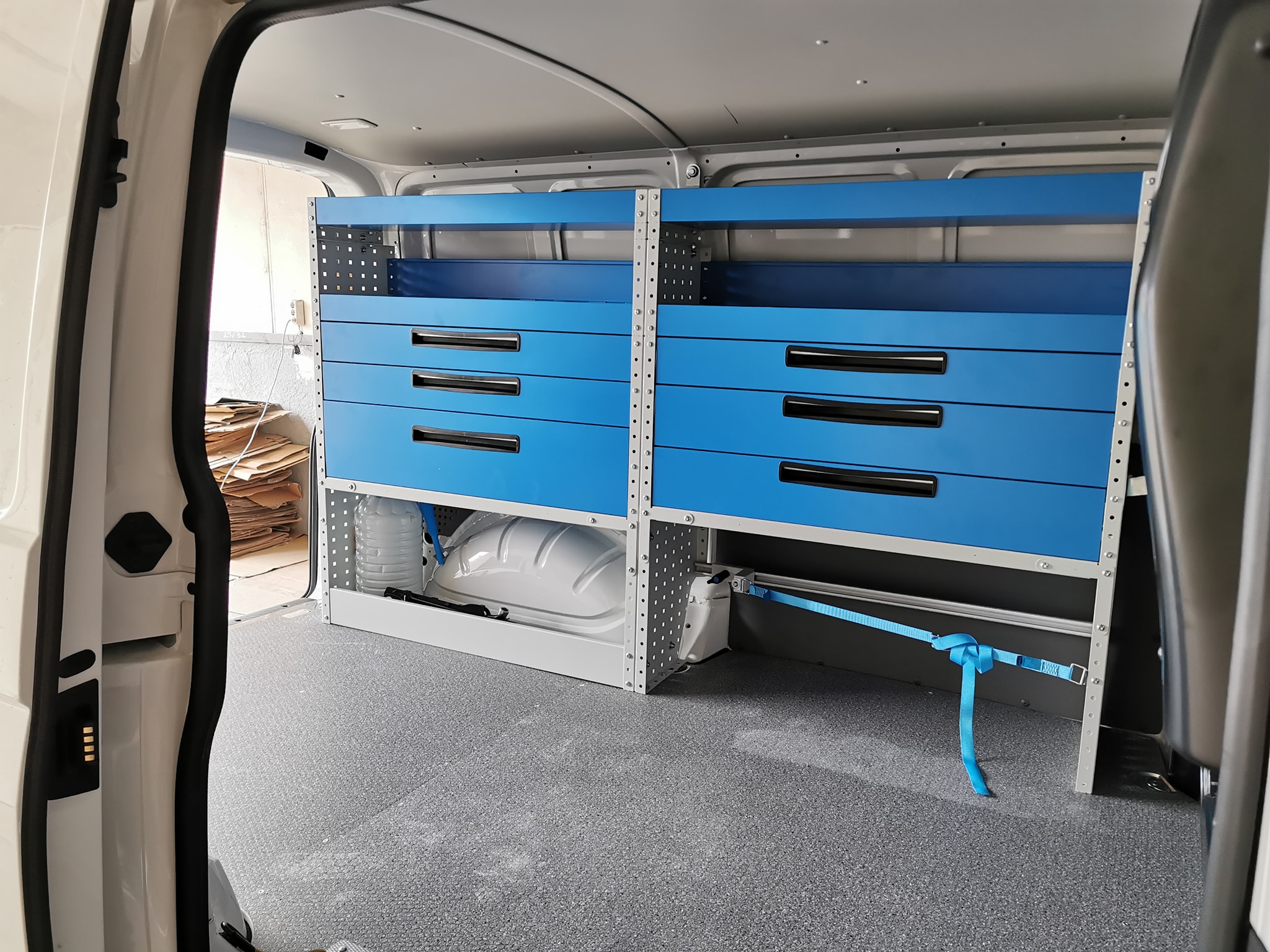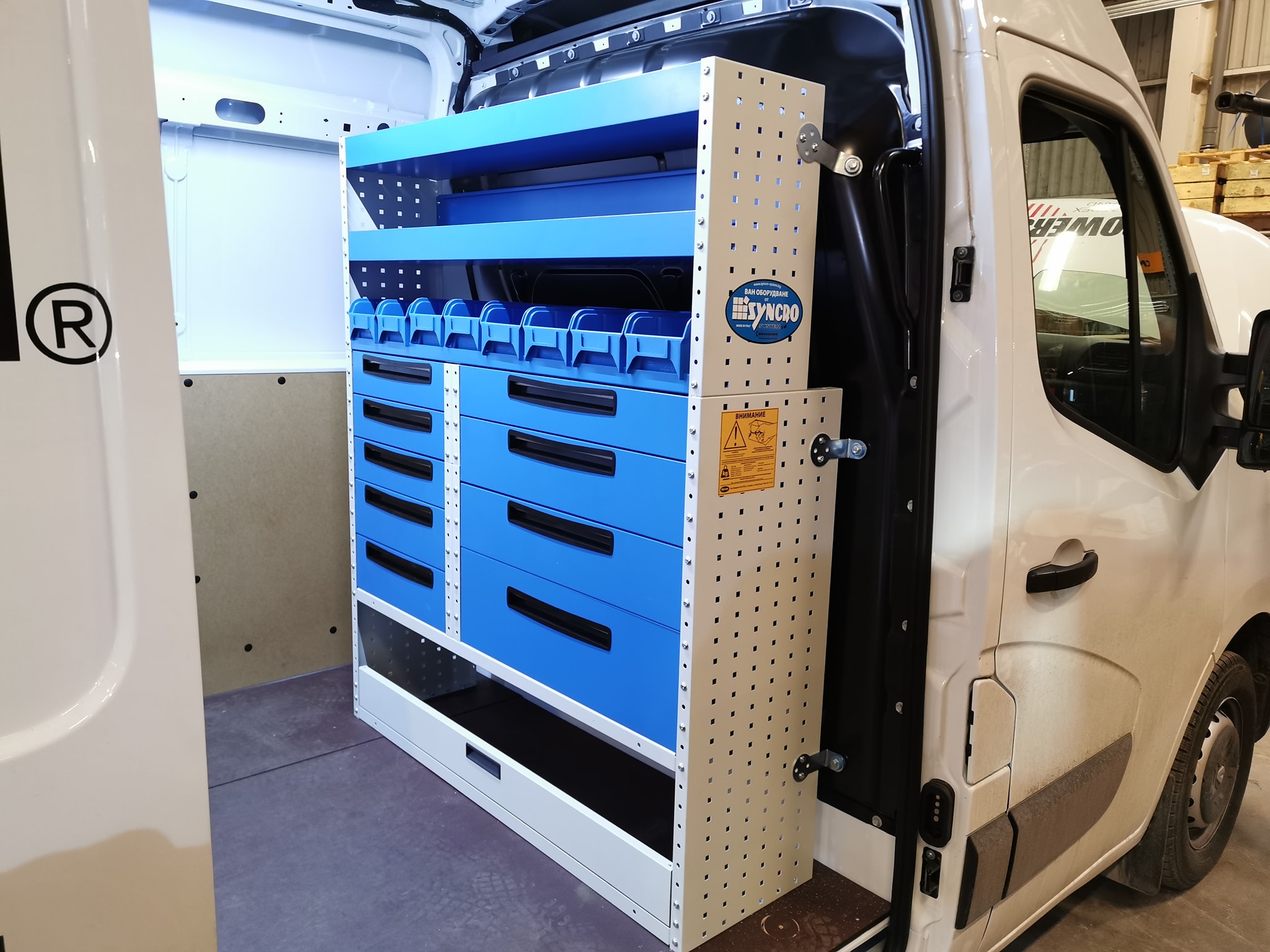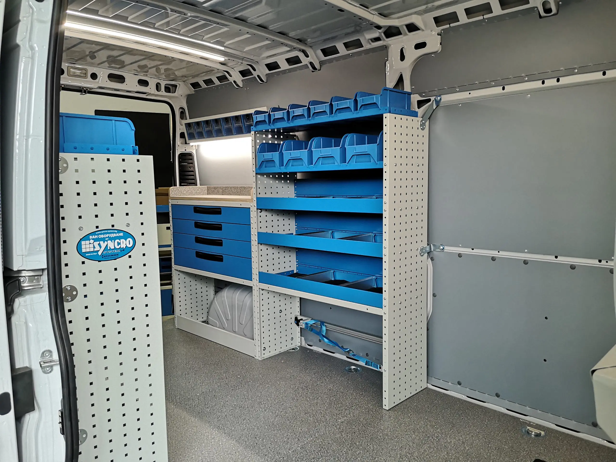 Стелажите са сред най-търсените продукти за оборудване на ван. За да са едновременно здрави и леки, стелажите се произвеждат алуминий и високоякостна стомана, която е с 25% по-устойчива от стандартната и позволява да се увеличи полезния товар, защото е с до 30% по-лека. Стелажите могат да се проектират в различни варианти, с различни размери.