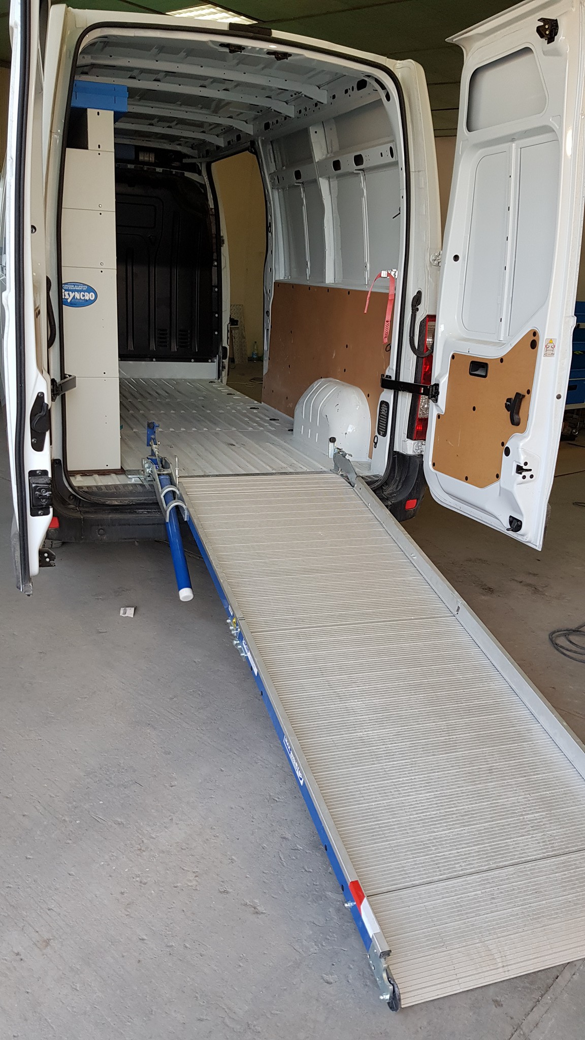 Тежките товарни рампи са с двойно отваряне и представляват алуминиево или стоманено приспособление, което издържа тегло от почти 2 тона. Блокиращите лостове може да се отварят хоризонтално, когато рампата трябва да се използва: в тези моменти газовите пружини намаляват тежестта, която иначе би била поета от ползвателя, и улесняват поставянето на земята. От друга страна вертикалното отваряне е необходимо в случай, че се наложи да влизате във вана и следователно ви трябва достъп откъм задната врата, временно блокирана от рампата. Достатъчно е да завъртите рампата докрай навън или навътре, за да освободите лесно входа.